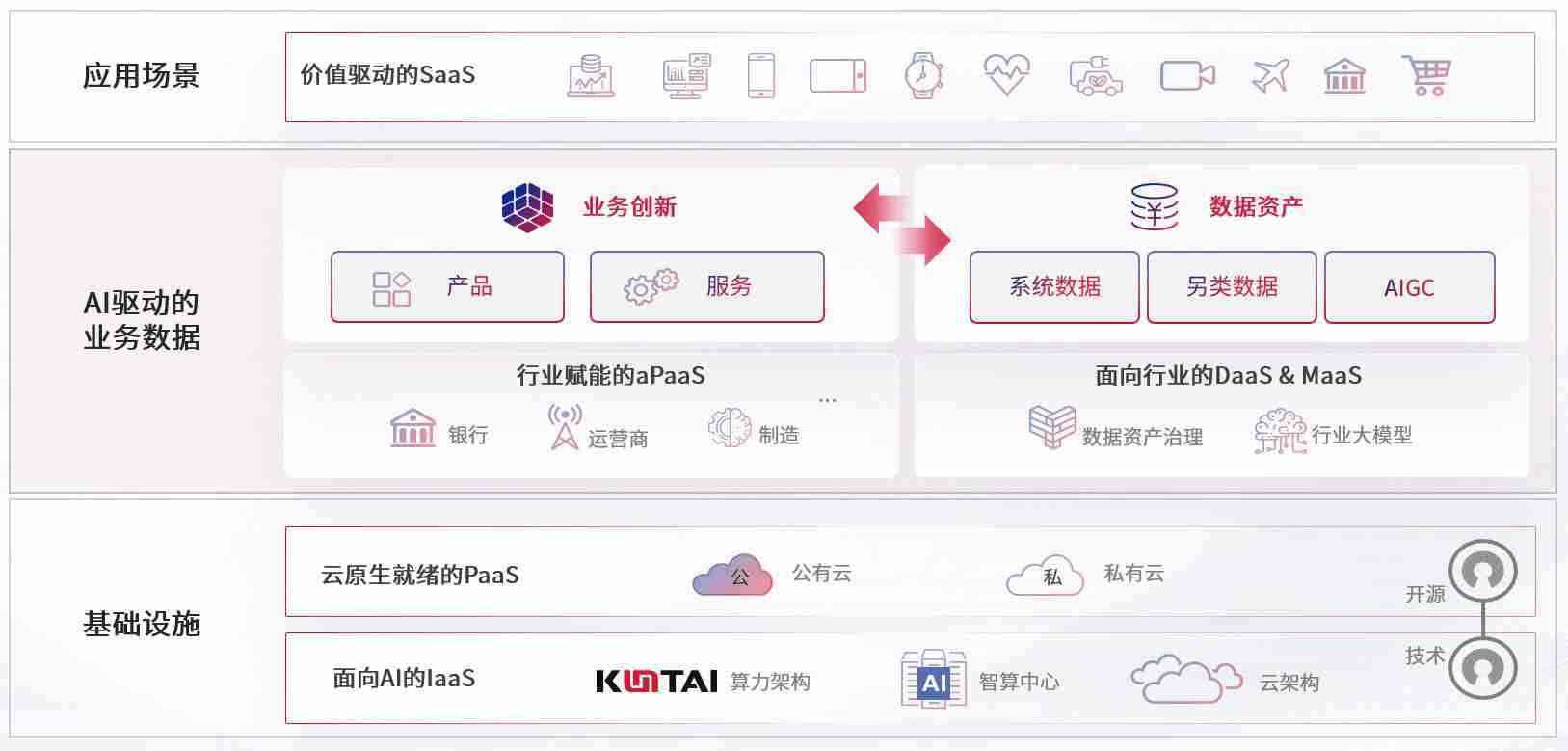 数字时代,,围绕企业数字化转型的关键要素,,K豆钱包数码开创性的提出数云融合战略和技术体系框架,,,着力在云原生、、、数字原生、、、AI原生和信创产业上架构产品和服务能力,,,,为处在不同数字化转型阶段的快消零售、、、、汽车、、、、金融、、、、医疗、、、、政企、、教育、、、运营商等行业客户提供泛在的敏捷IT能力和融合的数据驱动能力,,,,构建跨界融合创新的数字业务场景和新业务模式,,助力企业级客户建立面向未来的核心能力和竞争优势,,,全面推动社会的数字化、、、、智能化转型升级。。